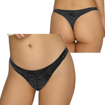 フェリカ生地&レース刺繍ポケット付きオープンTバック ブラック ブラック