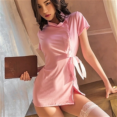 ピンクカラーが印象的な歯科衛生士風コスチュームセットです!セット内容はボディフィットするワンピースとTバックで、ストッキングは付属していません♪滑らかな素材で作られており、様々なポーズやプレイに対応可能!ピンクの生地が可愛らしさを演出しながら、タイトなシルエットがボディラインを美しく引き立てます♪フロントのボタンとサイドリボンがほどよくアクセントを加え、洗練されたデザインが魅力的です!肌触りも良く、快適な着心地を実現しました♪写真撮影や特別な時間の演出にもぴったりで、幅広いシーンで活躍するおすすめの一着です!魅力的でフェミニンな雰囲気を楽しみたい方に最適なアイテムです♪