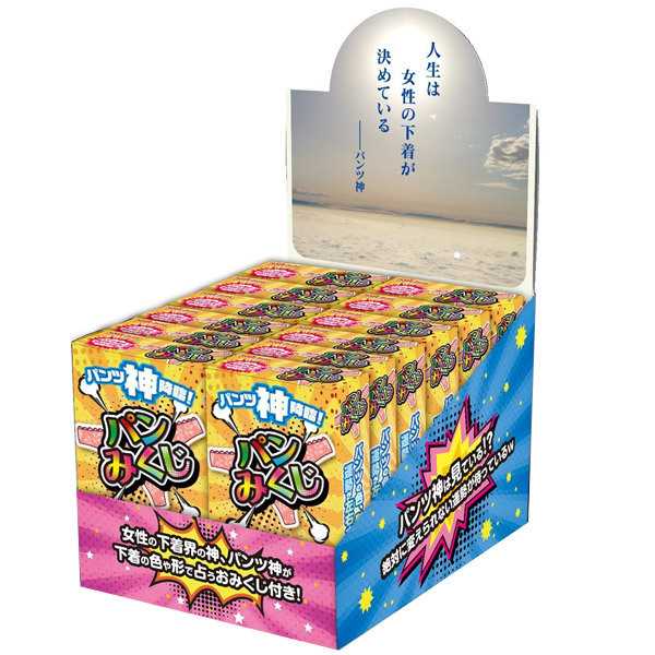 販促用や大人買いの方はこちら♪パンティには神が宿っている!かどうかは分かりませんが、届いたパンツの色や形によって運勢が決まる(かもしれない)おみくじ付きパンティ・展示用ケース入り12個セット。
