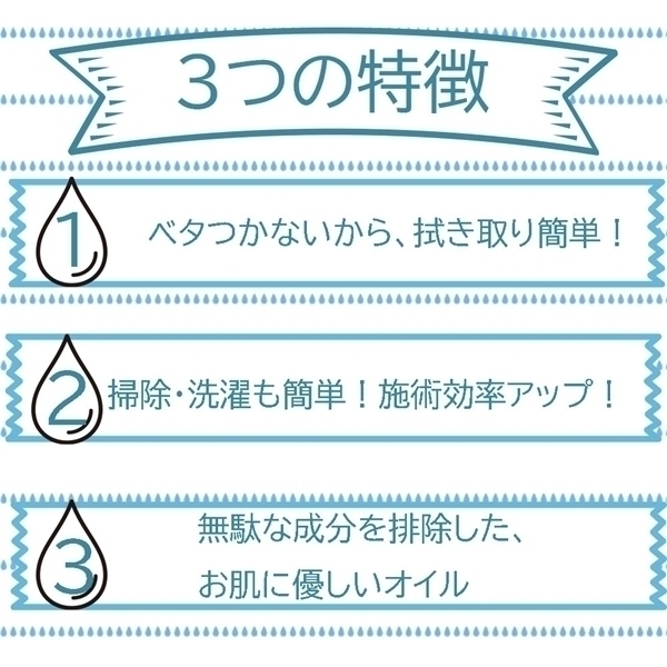 拭き取り簡単でベタつかず、水洗いでラクに落ちる水溶性マッサージオイルです。