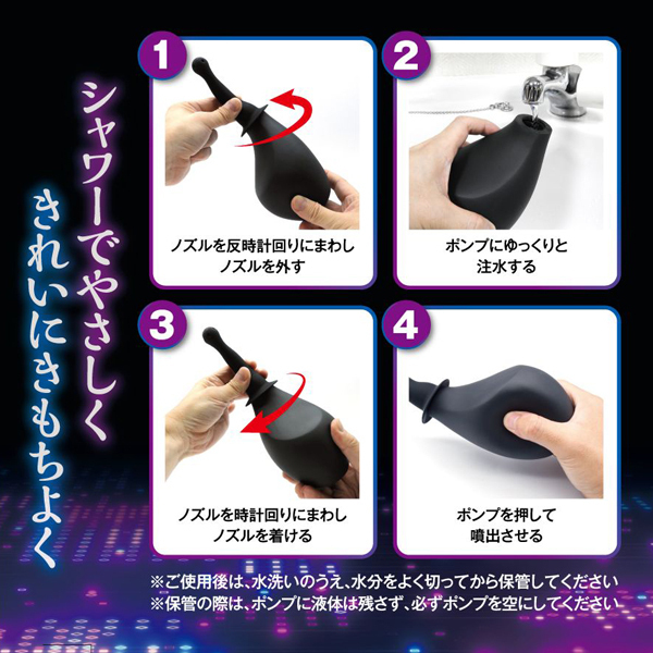 いろいろ使える噴出ポンプなので、アナルやアソコの洗浄はもちろん、オナホの内部洗浄もOK!中に液体を変えれば、ローション注入器や洗浄液注入器とも使えちゃう!