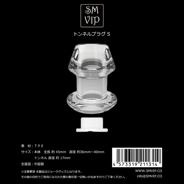 SMVIPトンネルプラグ(S)は、安定感のあるデザインで、安心して使用できる中空タイプのプラグです♪先端が丸い台形の形状で、挿入時にしっかりとフィットし、抜けにくい構造になっています!透明な素材を使用しているため、内部が確認でき、さまざまなアイデアで楽しめる設計♪キャップが付属しており、ストッパーとしても使用可能です!キャップを締めた状態で外出したり、液体を注入するプレイにも対応♪柔らかく耐久性のあるエラストマー素材を採用し、使いやすさと安全性を両立しています!SサイズからXXLサイズまでの幅広いラインナップがあり、目的に応じた選択が可能です♪多様なプレイをサポートするこのトンネルプラグは、自由な発想で楽しめるアイテムです!