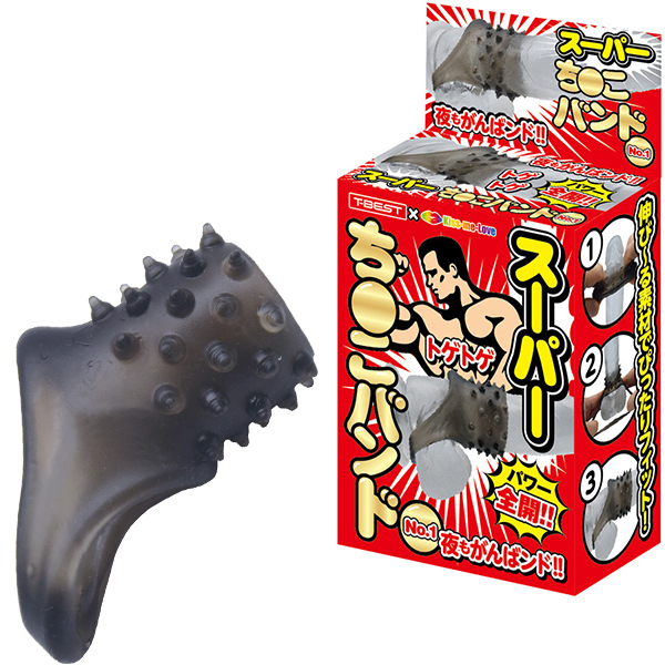 夜もがんばリングで大人気のやわらかメンズリング「ち●こリング」シリーズにスーパーなバンドが新登場!今度のち●こバンドは「ベースに装着するメンズバンド」!ぷにぷにっとした柔らかなTPE(エラストマー)素材は、ぐい〜んとよく伸びる高伸縮性!サイズ問わずでどんな大きさでもしっかりフィットの抜群の装着感&締付感!さらに、ツンツンとしたトゲトゲ突起による高刺激快感が!男らしさを引き立たせるスモークカラー!ほとばしるストロング、みなぎるパワー!