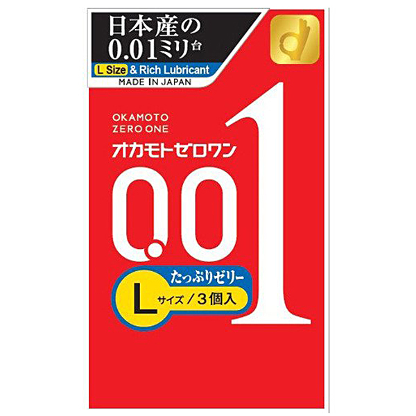 HOME > コンドーム・避妊具 > 薄い・厚い(早漏防止) > 【オカモト史上最薄0.01】オカモト ゼロワン (Lサイズ たっぷりゼリー) 3個入